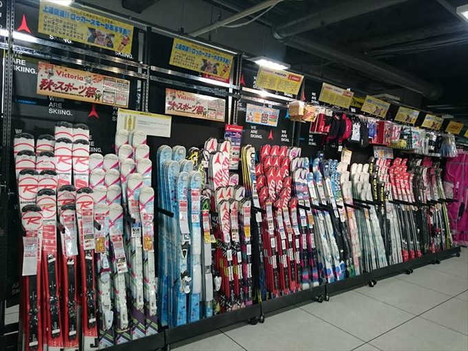 本屋と並んで多くみかけるのが都内屈指の大型のスポーツ店街です。冬にはスキーやスノーボード、夏にはマリングッズが店頭にならび、一年を通して賑わいを見せています。