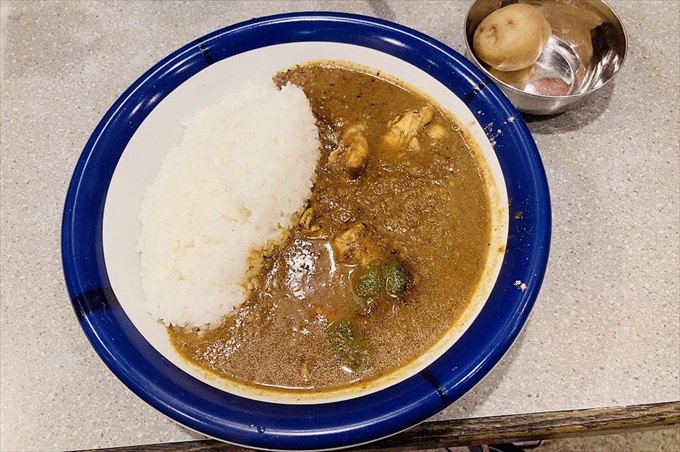 お通しにほくほくのじゃがバターがサービスされるのも神保町ならでは。そのままはもちろん、熱々のカレーと混ぜて食べるのもツウですよ。じゃがバターはおかわりも無料でできるので、いろいろな食べ方で楽しんでみてください。