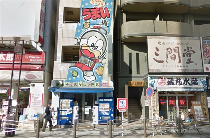 錦糸町駅北口のバスロータリーを抜けて右に曲がると、うまい棒の絵が描かれたビルが目に飛び込んできます。こちらは、東京でも珍しい駄菓子の問屋で、お店に入ると昔懐かしいお菓子がずらっとで並んでいます。