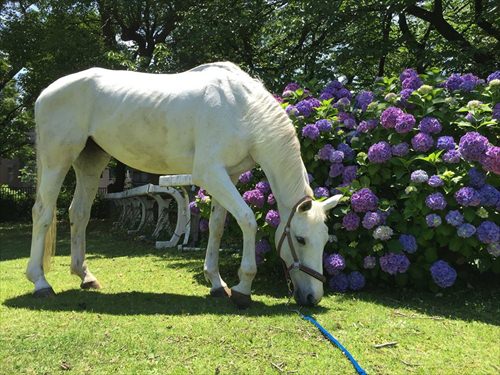 競馬場跡で馬の歴史とポニ-に触れてみよう!