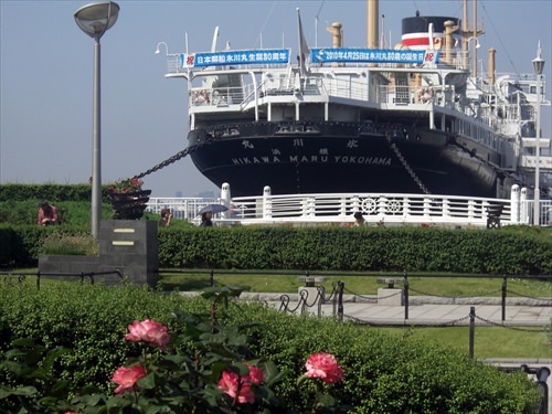 園内では大型客船「氷川丸」が一般公開されており、一等客室や食堂など普段中々見ることができない船内を拝むことができる。船上デッキ部分から眺める横浜港の景色も見事だ。