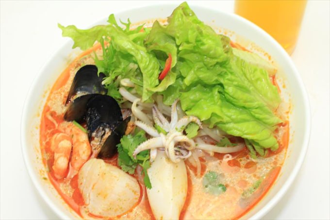 おすすめメニューはホーモックタレー。ココナツミルクでシーフードを蒸したもので、ふわふわ感がたまりません!
