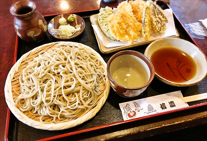 定番のざる蕎麦は、コシがしっかりしたお蕎麦とやや濃いめのかつお風味豊かなめんつゆとの相性がたまりません。サックサクに揚げられた天ぷらもとっても美味しいので是非頼んでみて下さい。
