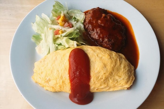 オムライスだけでもいくつものメニューがあり、目移りしてしまいますが、まず食べてほしいのはやっぱり普通のオムライス。オーソドックスなチキンライスの上にふんわり仕上げられた卵が乗っており、昔ながらの味につい頬がゆるみます。