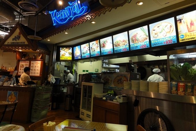 まるで本場タイのフードコートのような雰囲気のお店。ランチはA (麺セット)とB (ご飯物セット)があります。どのメニューも入っている具材や味付け、辛さなどが詳しく日本語で書かれているので初めての訪問で安心。