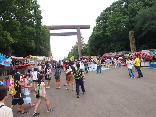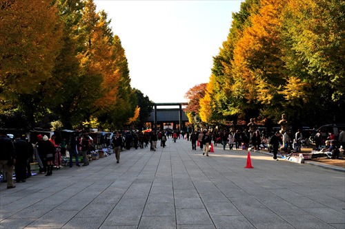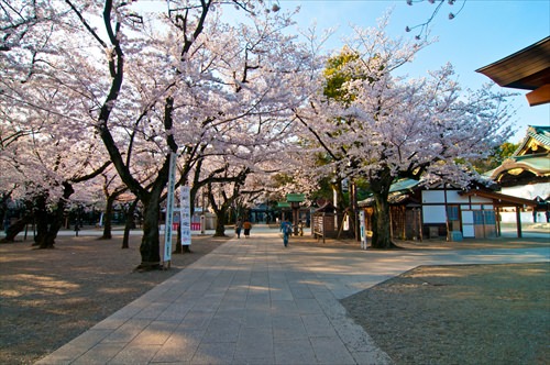 迫力のある大鳥居に圧巻されつつくぐれば、境内へと誘うようにイチョウ並木が続く。秋には黄金色に染まり、訪れる人を楽しませてくれる。春には約400本の桜が咲き乱れ、東京の開花宣言の基準となる木があることでも有名だ。四季折々の表情を見せてくれるので、参拝しつつ自然を愛でてみては。