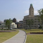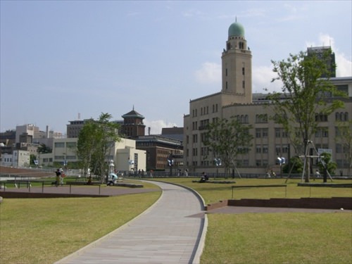 赤レンガ倉庫と大桟橋の間にある、横浜開港150周年を記念する公園。象の鼻パークという名前は、防波堤の形が象の鼻に似ていることに由来している。