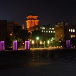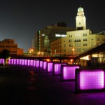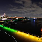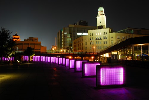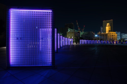 昼の眺望も素敵だが、デートで訪れるなら特に夜がおすすめ。パーク内はクリーンパネルの照明によってライトアップされ幻想的な空間に変貌を遂げる。クリーンパネルは時間帯や日によってライトの色が変化するので、様々な光の演出を楽しむことができる。