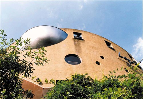『ガリバー旅行記』にでてくる天空に浮かぶ島ラピュタをイメージして造られたラピュタ阿佐ヶ谷は、閑静な住宅地のなかでひときわ目立った装い。緑におおわれた丸みのある土壁のビル、らせん状の階段、屋上で風に吹かれて回っている風車。まるで映画の中に存在するような映画館だ。