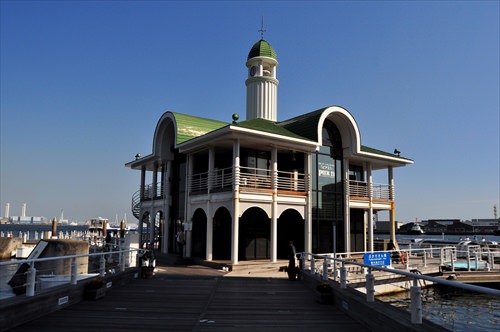ターミナル内には、日本では珍しいフローティングレストラン「海鮮びすとろ・ピア21」を併設。店内は全面ガラス張りで、横浜港を行き交う船や「横浜ベイブリッジ」「赤レンガ倉庫」「横浜港大さん橋国際客船ターミナル」などを一望しながら食事を楽しむことができる。