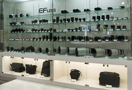 「カメラ女子」という言葉が生まれるほど、最近ではカメラが人気。もちろん、ショールームなので、最新のカメラも勢ぞろいしている。写真好きのカップルなら是非とも訪れたいスポットだ。