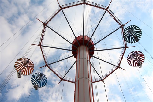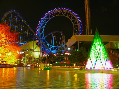 アトラクションはバラエティに富んでいる。ジェットコースターやお化け屋敷でドキドキを楽しむのも良し。おすすめはなんといっても夜に乗る観覧車の「ビッグ・オー」。
