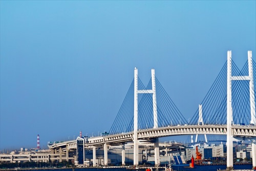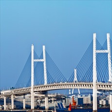 平成元年に開通した高さ175m長さ860mの橋。市内のマンホールなどにも横浜ベイブリッジはデザインされており、横浜・みなとみらいのシンボルの一つとなっている。