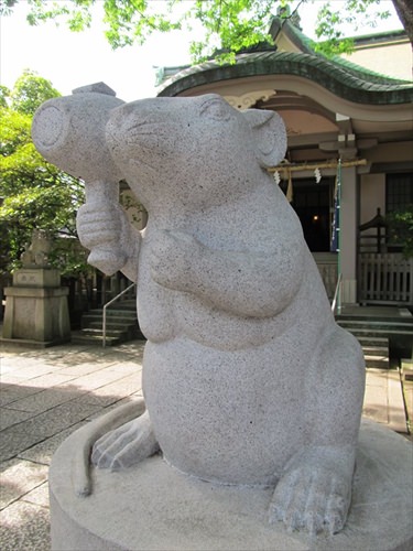 拝殿前の参道の両脇に、狛犬ならぬ狛鼠(こまねずみ)が鎮座しているのが何とも珍しい。これは戸部杉山神社のご祭神の大国主命(オオクニヌシノミコト)のお使いが鼠であることに由来する。