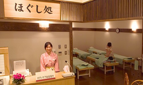 帰ってきたらそのまま温泉に入って、ゆっくり疲労を回復。ほぐし処もあるので気になるところがあれば二人で施術してもらおう。