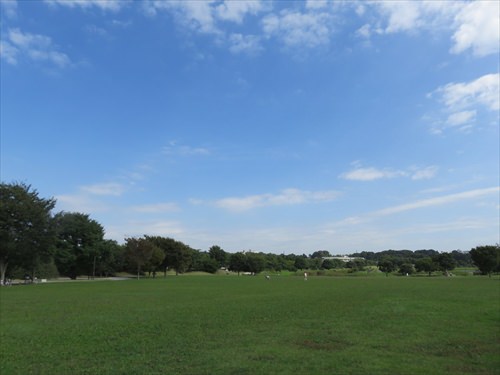 武蔵野の森公園はもともと米軍の飛行場だった場所が全面返還されてできた公園。飛行場だったことを活かし、フラットで開放感あふれる空間が気持ちいい。