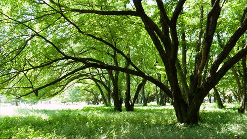 広大な芝生広場に周辺には桜や銀杏、ヒマラヤ杉等の大木が植えられており、これらは米軍住宅時代に植えられていたものを移植した樹林で「憩いの森」と呼ばれ親しまれている。