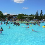 レインボープールは国営昭和記念公園内にある夏季限定の屋外プール。約63,000㎡と首都圏最大級の広大な敷地に流水プールや大波プールなど9つのプールが用意されている。