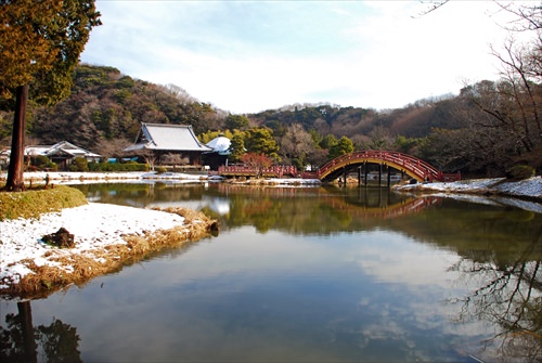 称名寺は金沢流北条市菩提寺で鎌倉時代の質実剛健な雰囲気を感じさせる趣のあるお寺。駅から徒歩10分ほどで、朱塗りが印象的な惣門が迎えてくれる。