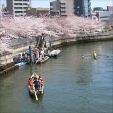 桜の時期には、「お江戸深川さくらまつり」が開催されている。大横川にかかる桜のトンネルをくぐるのは船ならでは。