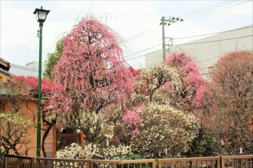 とてもこぢんまりとした神社だが、実は隠れた梅の名所として知られている。江戸時代の名所、「小村井梅屋敷園」を神社の一画に再現しており、さほど広くない敷地になんと120本もの梅の木が植えられている。