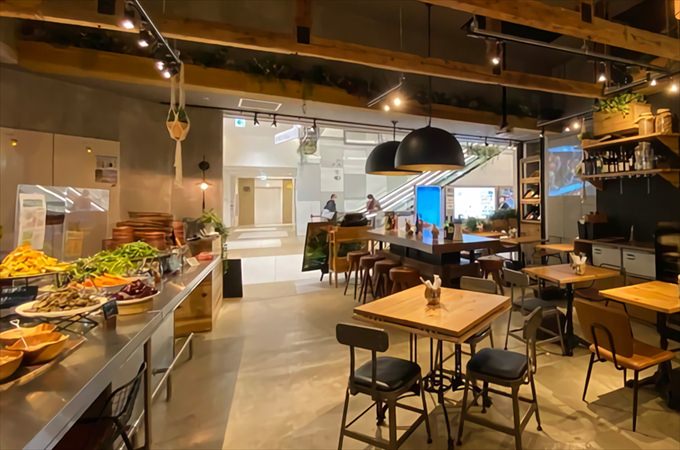 収穫したてのさまざまな新鮮オーガニック野菜を取り揃えているレストラン。ランチはビュッフェ形式で、季節野菜のメニューをラインナップ。