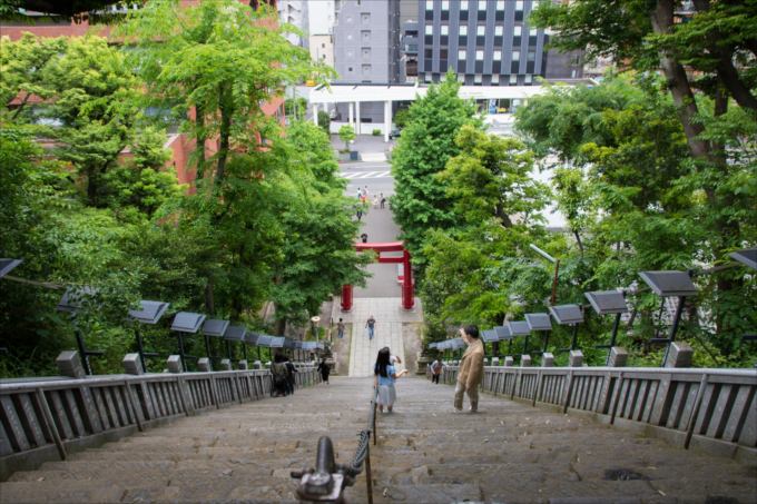 東京タワーから徒歩13分の場所に位置する、仕事運にご利益がある神社。名物は鳥居をくぐった先にそびえる「出世の石段」。この石段を登ると出世すると江戸時代より語り継がれています。