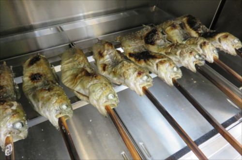 釣った魚は持ち帰りのみとなるが、食堂を利用すればプロが焼きあげる絶品の塩焼きを味わうこともできる。