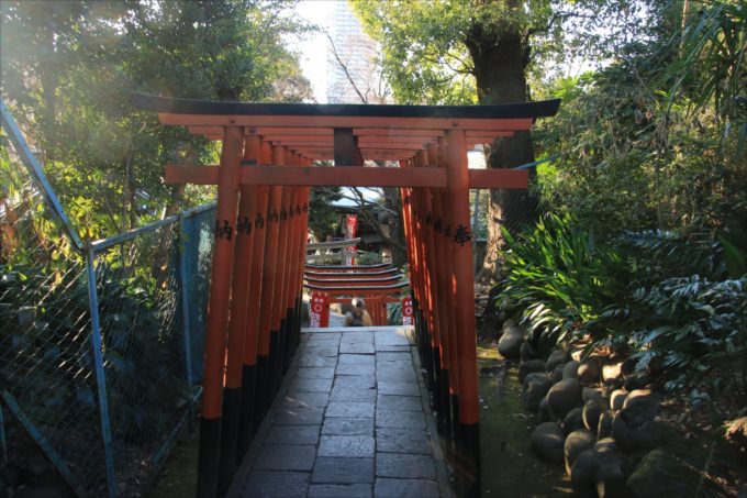 境内は、稲荷神社らしく社殿まで赤い鳥居が続きトンネル状になっています。社殿の奥には「穴稲荷」と呼ばれる洞窟のような場所があり、お稲荷様が祀られているので、そちらのお参りもお忘れなく。