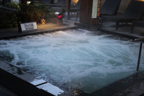 16種類ものお風呂・サウナを楽しめるが、特徴的なのは3種類の「炭酸泉」。炭酸泉とは、高濃度の炭酸ガスを溶け込ませたお風呂で、関節痛に効いたり、血糖値の低下に効果があったりすることから、健康長寿に効果抜群と言われている。