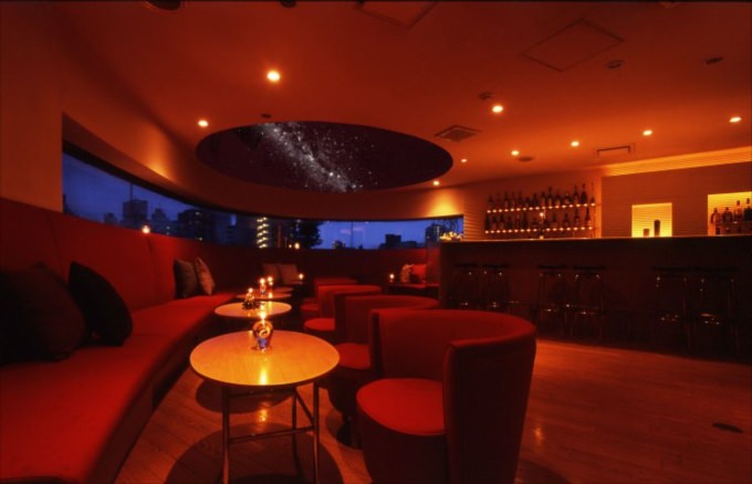 シャンパンを傾けながらプラネタリウムが楽しめる極上のデートスポット。店内に入れば、天井と壁に映し出された満点の星空が広がります。