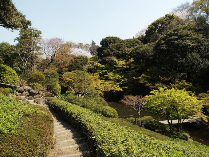 東京都庭園美術館は、緑に囲まれた落ち着いた場所に位置し、敷地の一角にある日本庭園も見事!そんなに広くはありませんが、どこから眺めて素晴らしい庭園美を拝むことができます。