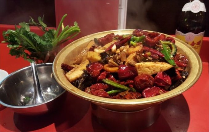 看板なし、マンションの一室に構える火鍋店。まさに大人の隠れ家的なお店です。赤で統一された店内にて提供される火鍋も真っ赤。