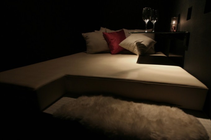 席はなんと、ベッドのある個室ダイニング!おふたりを基本として、最大1室に6名まで収容可能なのですが、極上のプライベート空間、ぜひともカップルで利用していただきたいものです。