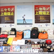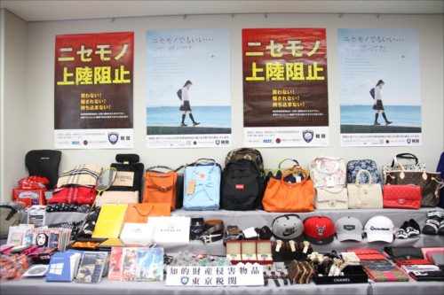 コピー商品のコーナーではブランド品の本物と偽物が並べられている。見分けられるか試してみるのも面白い。