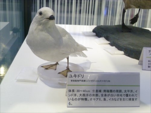 極域に住む生物の標本などが展示されているコーナーでは、アザラシやペンギンなど有名な生物から珍しい生物まで、様々な生物のはく製が見られる。