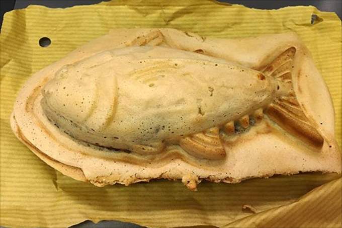 お店は築地市場の裏手に位置しています。外側はパリッと、内側はふわっとした2つの食感。中には自慢の小倉あんがぎっしりと詰まっています。小倉あん入りの「本マグロ」と小倉あんにあんずが入っている「中トロ」を販売。