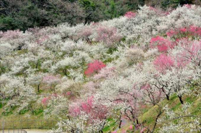 約1,400本もの紅や白の梅の木が一斉に咲き乱れる光景は圧巻!その姿に圧倒されてしまいますよ。