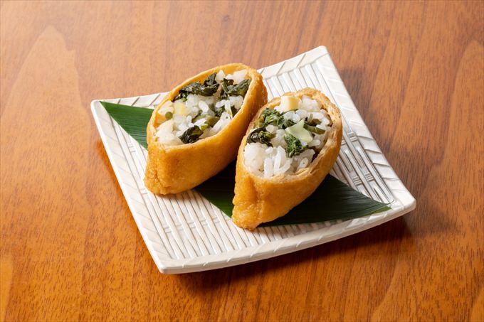 お稲荷さんをメインとした甘味処です。お稲荷さんは、山菜やシソが混ぜ込まれた風味豊かな「すみれいなり」とひじきたっぷりで食べごたえのある「てんぐいなり」の2種類。