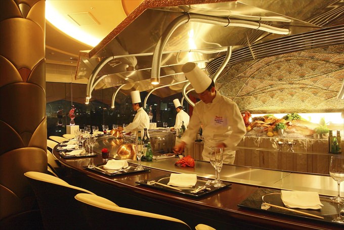 記念日デートで行きたい高級鉄板焼きレストラン。大きな窓に囲まれた内装は開放感があり、優雅な家具で飾られたアートな空間が広がります。窓際の席からは美しい夜景が望めて、個室とテラス席も完備。