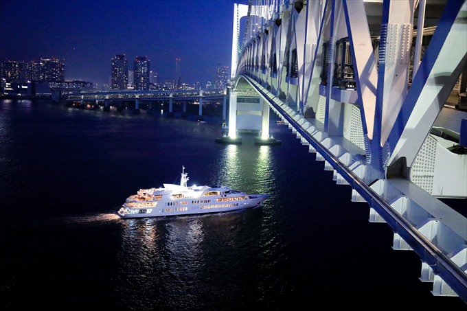 東京湾の景色と美味しい食事が楽しめるクルーズ船。記念日デートならレインボーブリッジや東京ゲートブリッジ周辺の夜景を望める、ディナークルーズはいかがでしょうか。