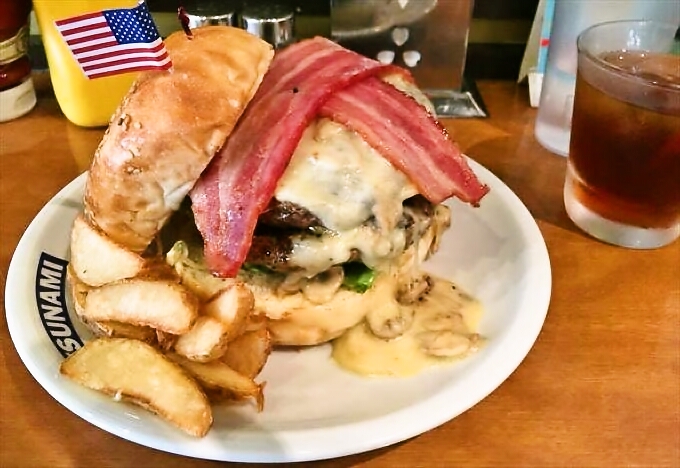 一番人気のメニューは、「ジョージ・ワシントンバーガー」。580gの大迫力のハンバーガーです。女性に人気なのが、チーズをトッピングしたネイビーバーガー。トロトロのチーズがたっぷりかかっていて、チーズ好きにはたまりません。