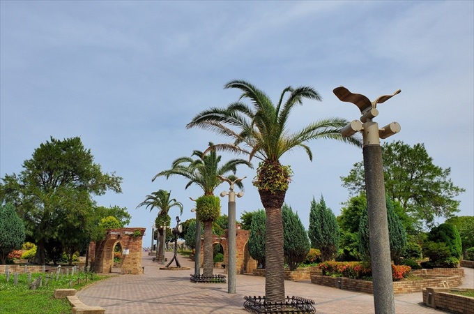 130種類、約2000本のバラが園内に植えてあり、シーズンを迎えるととっても華やかな光景が広がります。海をゆったりと眺められる広場や、時間になるときれいなメロディを奏でる時計台も必見。