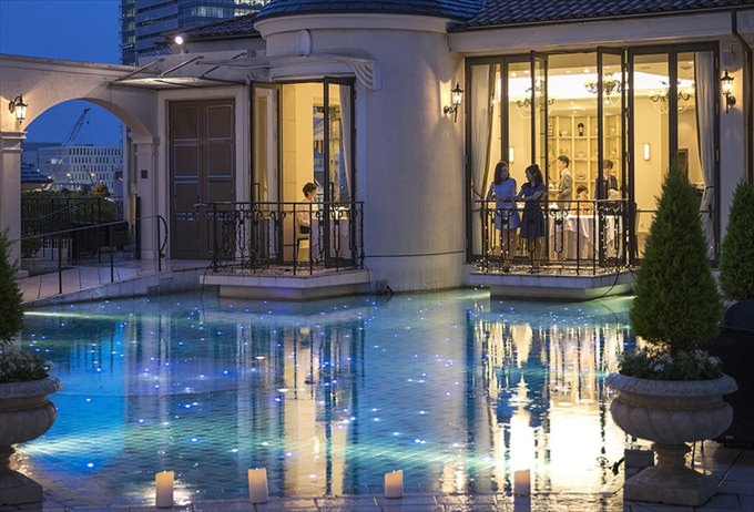 プール付きの空中庭園からは海も望め、横浜の喧騒から逃れ優雅なランチタイムを存分に満喫することができます。