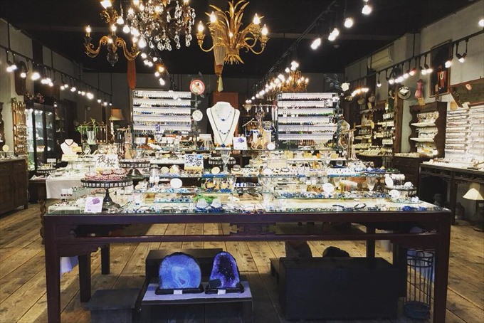 落ち着いた照明の店内に、光る色とりどりの天然石。表参道沿いに佇むこちらの施設では、天然石のアクセサリーを販売しています。