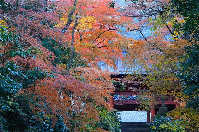 特に紅葉のシーズンになると、たくさんの人が訪れる人気のスポットです。また、境内にある薬師堂には、子供の幸せを守る仏様として信仰されている「躍進如来像」が納められています。黄金色に輝くその姿は必見ですよ。