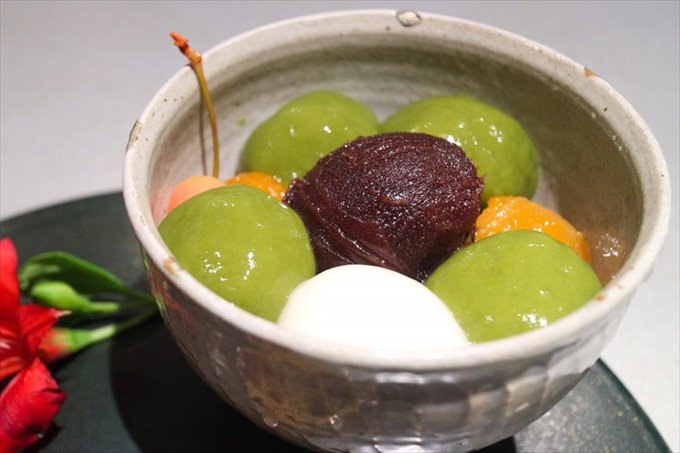 ここの白玉は、注文を受けてから茹で始めます。いつでも作りたての白玉を頂くことができ、湯気が出ていてホカホカです。