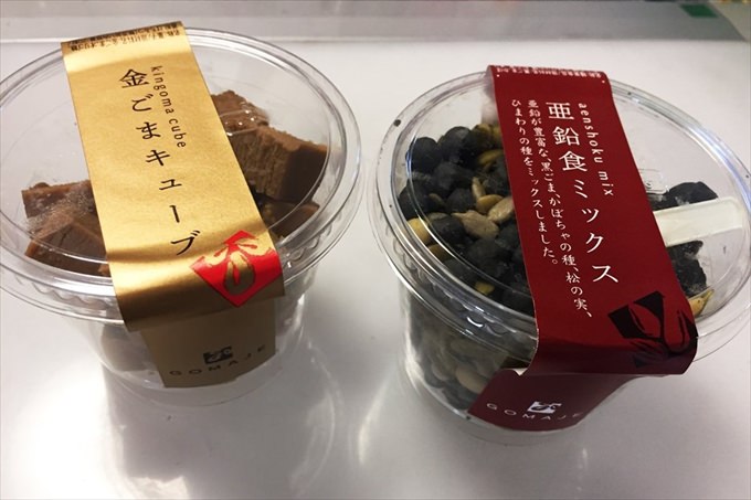 ごまを使った調味料やソフトクリームを販売していますが、なかでも人気なのが「ごまキューブ」。金ごまと黒ごまの2種類ありますが、お店のイチオシは金ごま。