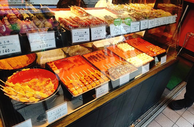女性人気が高いお団子屋さんです。1串に4つのお団子が刺さっていて、お値段は100円~200円とお手頃価格。メニューは常時10~15種類ほど豊富に用意しているので、どれにしようか迷ってしまうくらい。