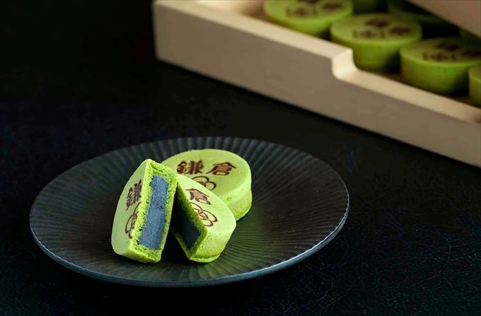 鎌倉焼きは、ころんとした丸いフォルムがかわいらしい、一口サイズ程の大きさ。体に優しいごま餡を、宇治抹茶と国産卵・小麦粉を使用した生地で包み焼き上げた大判焼きです。